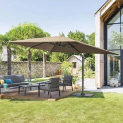 Protégez vous du soleil tout au long de la journée grâce au parasol décentré Eléa inclinable coloris noisette de la marque Hespéride.