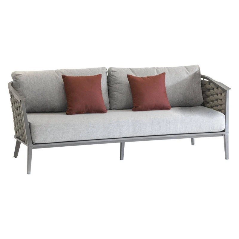 Elle est habillée de coussins en polyester déhoussables 240 g/m² coloris noisette traités déperlant.